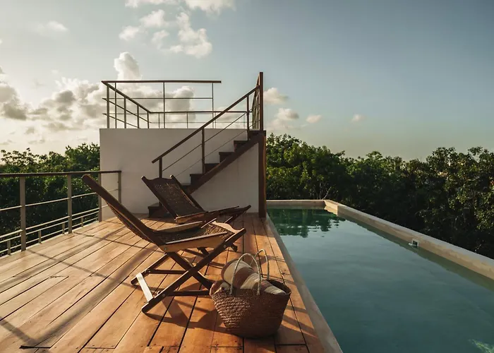 Staying at Jungle Retreat, Sleeps 10 Comfortably, Rooftop Pool Tulum apartment, guests can relax on a terrace 2.3 miles from Tulum Monkey Sanctuary. Guests can make use of Wi-Fi, bicycle rental options to explore the local area.